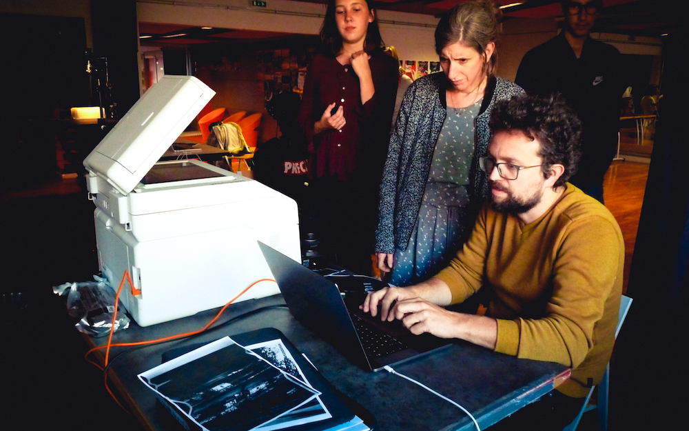 La forme finale de cette expérience est une performance audio-vidéo qui a été présentée en novembre 2018 à la GAM (Grange à Musique) et en novembre 2019 au Lycée Jules Uhry. Dans la performance, l'image et une partie du son sont fabriqués en direct. Par la manipulation des photos devant une caméra (un dispositif banc titre ) les participants ont fabriqué un film « en train de se faire ».